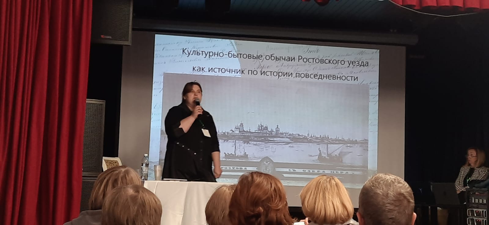 26-28 сентября в частном учреждении культуры «Музейный комплекс «Вятское» (с. Вятское, Ярославская область) состоялась десятая Всероссийская научно-практическая конференция «Судьба села — судьба России», посвященная обсуждению вопросов развития сельских территорий, сохранению культурного наследия и традиций российского села. Сотрудники филиала Государственного архива Ярославской области в г. Ростове Великом Битнер Елена Александровна и Козачук Мария Борисовна выступили на конференции с докладом «Культурно-бытовые обычаи Ростовского уезда как источник по истории повседневности» и электронной презентацией документов по заявленной теме. В своем докладе ростовские архивисты обратили внимание слушателей на истоки становления традиций и обычаев крестьянства и купечества Ростовского уезда, вызвав искренний интерес у участников конференции к поставленной тематике.