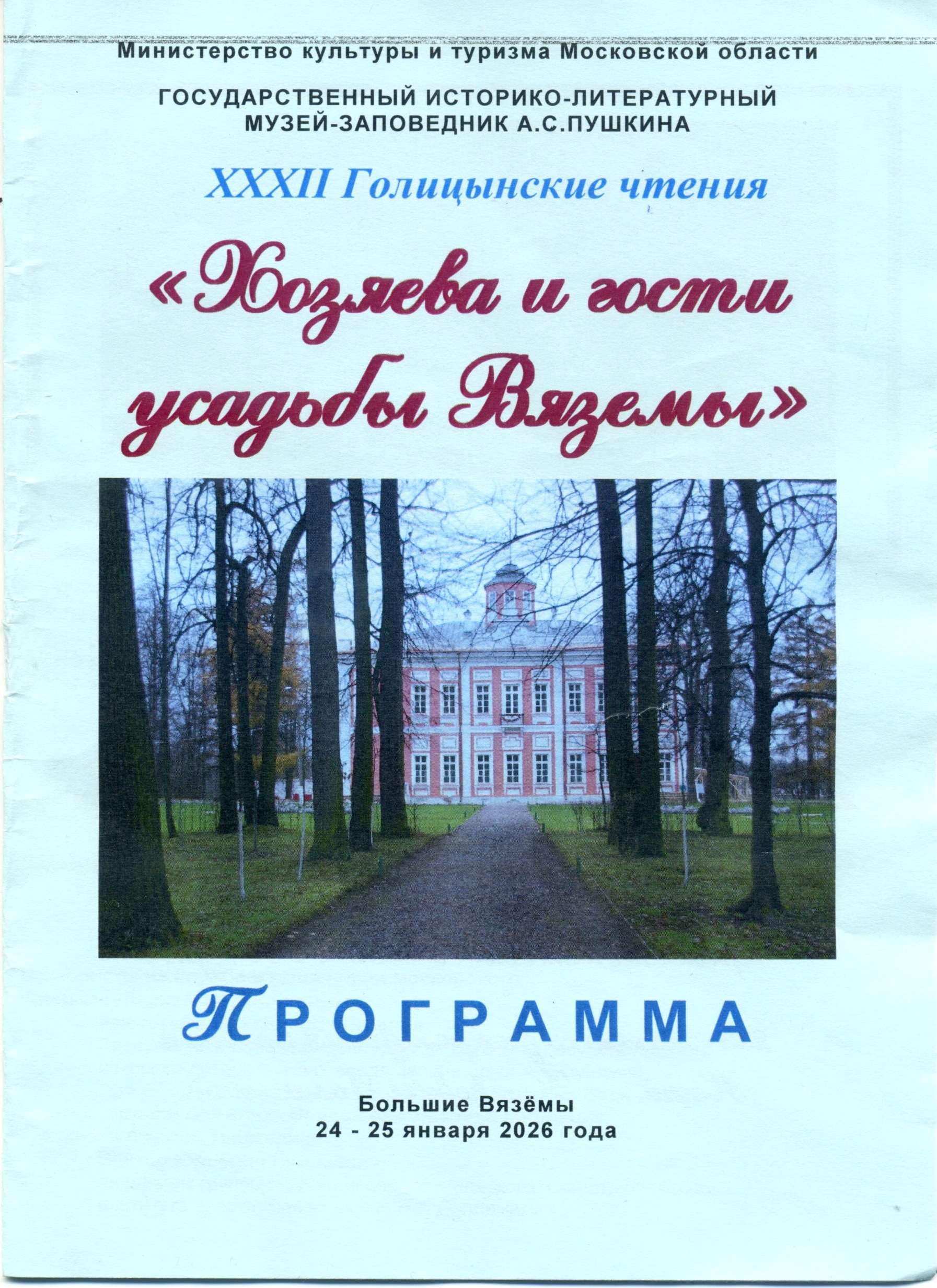 24 — 25 января в Государственном историко — литературном музее — заповеднике А. С. Пушкина (п. Большие Вязёмы Московская область) состоялись XXXII Голицынские чтения «Хозяева и гости усадьбы Вяземы». Эти чтения проводятся музеем ежегодно и имеют определенную направленность тематики, а именно, история рода дворян Голицыных, история русской усадьбы XVIII — XIX веков, А. С. Пушкин, его наследие и его время. В этом году кроме традиционной тематики чтения были посвящены и 200-летию восстания декабристов. В аспекте этого юбилея участники чтений ознакомились с выставкой «Испытание Сибирью», экспонаты для которой предоставил Иркутский государственный музей декабристов. Для участников чтений была подготовлена обширная музыкальная программа, знакомство с экспозициями музея и временными выставками, в частности, с выставкой из фондов Национального музея Республики Бурятии (г. Улан — Удэ) «Атлас Тибетской медицины» (картины врачевания — редчайший экземпляр атласа, сохранившегося в мире только в 2-х экземплярах). Тематика выставки не случайна, проблемы врачевания всегда актуальны, не исключая и пушкинскую эпоху.