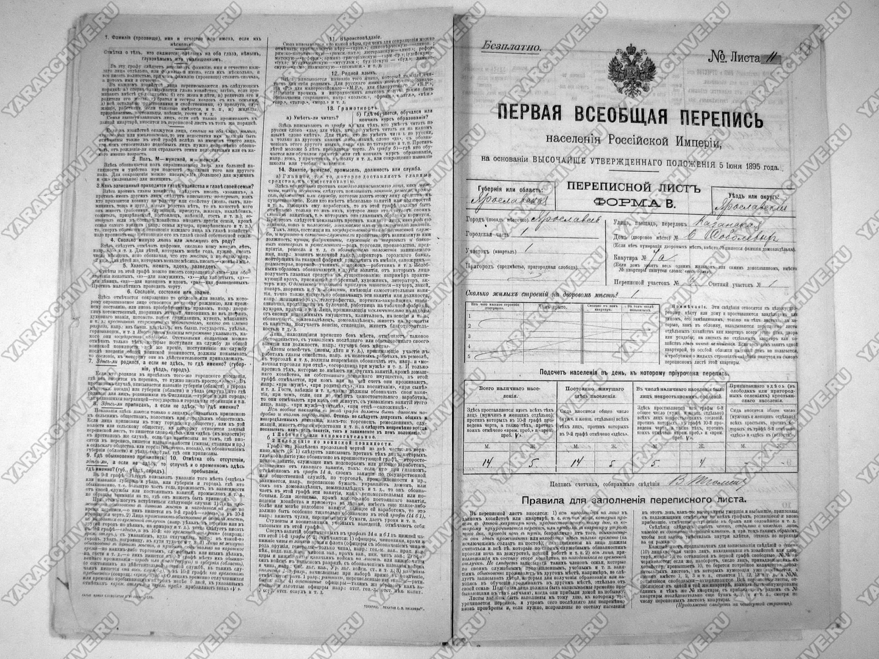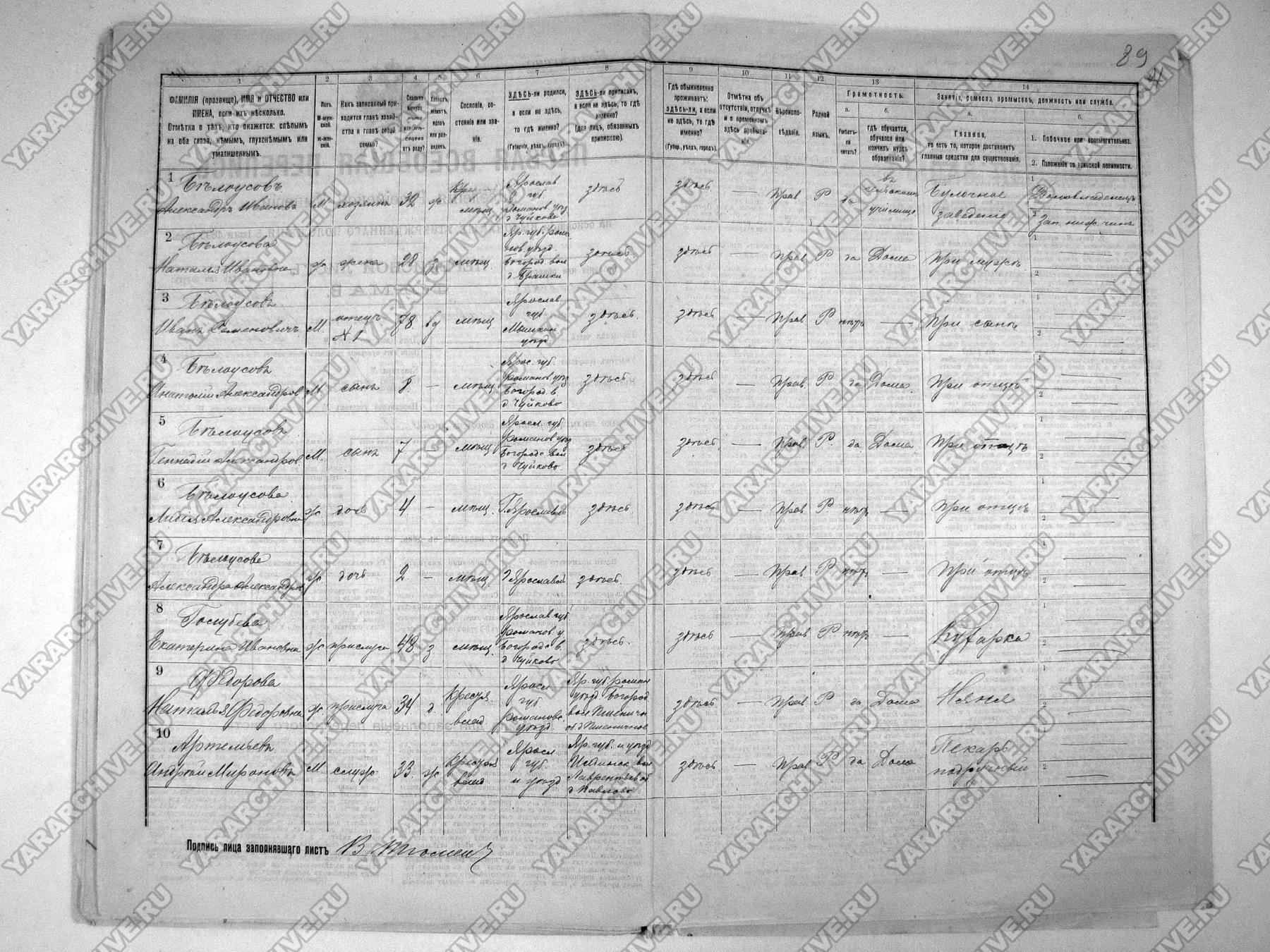Сведения о семье А. И. Белоусова из материалов Первой Всеобщей переписи населения Российской империи 1897 г. по г. Ярославлю. ГКУ ЯО ГАЯО. Ф. 642. Оп. 3. Д. 1319. Л. 88, 88 об-89.
