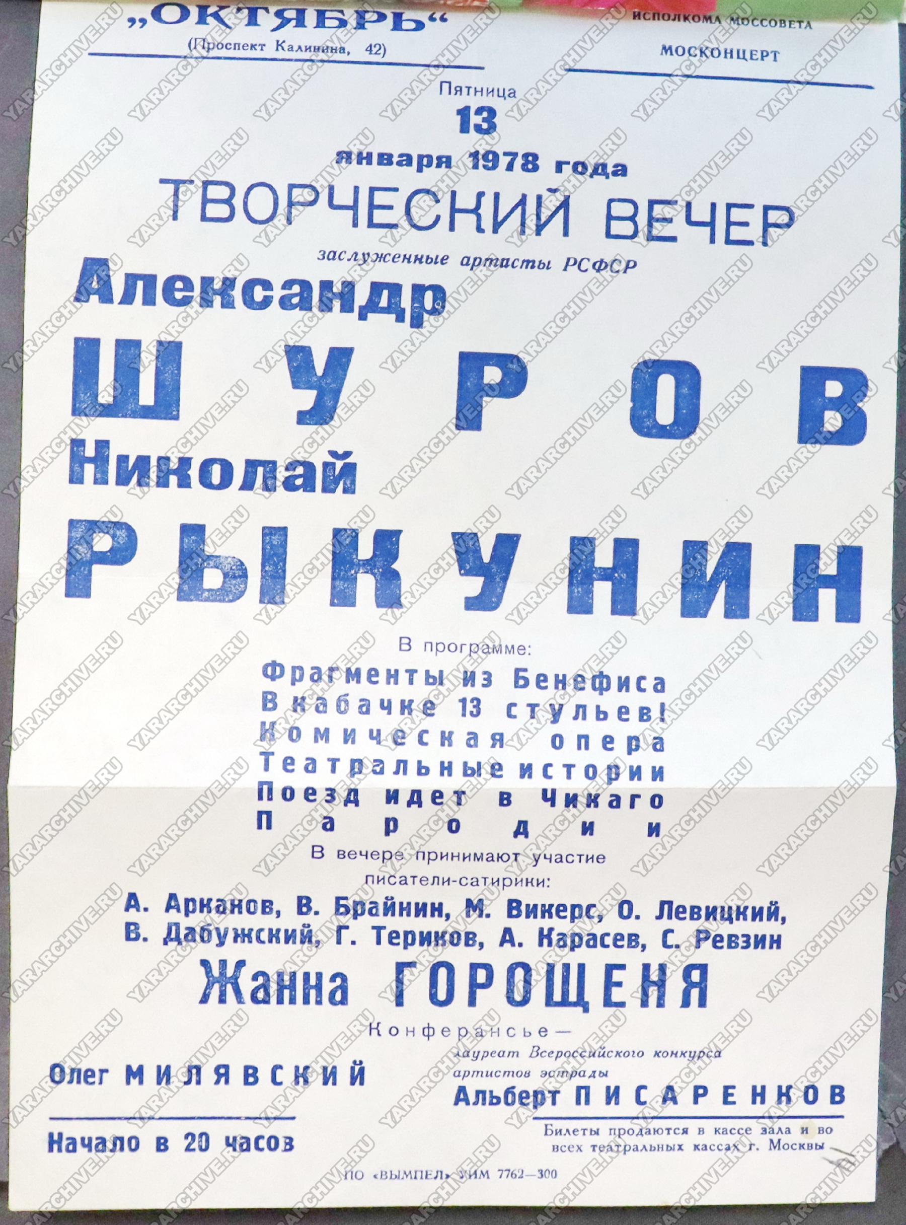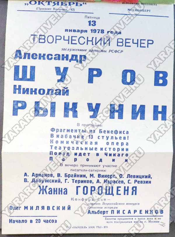 / Главная → Пресс-центр → Публикации → К 110-летию со дня рождения Рыкунина Николая Николаевича, заслуженного и народного артиста РСФСР, куплетиста, участника эстрадного дуэта «Шуров и Рыкунин»