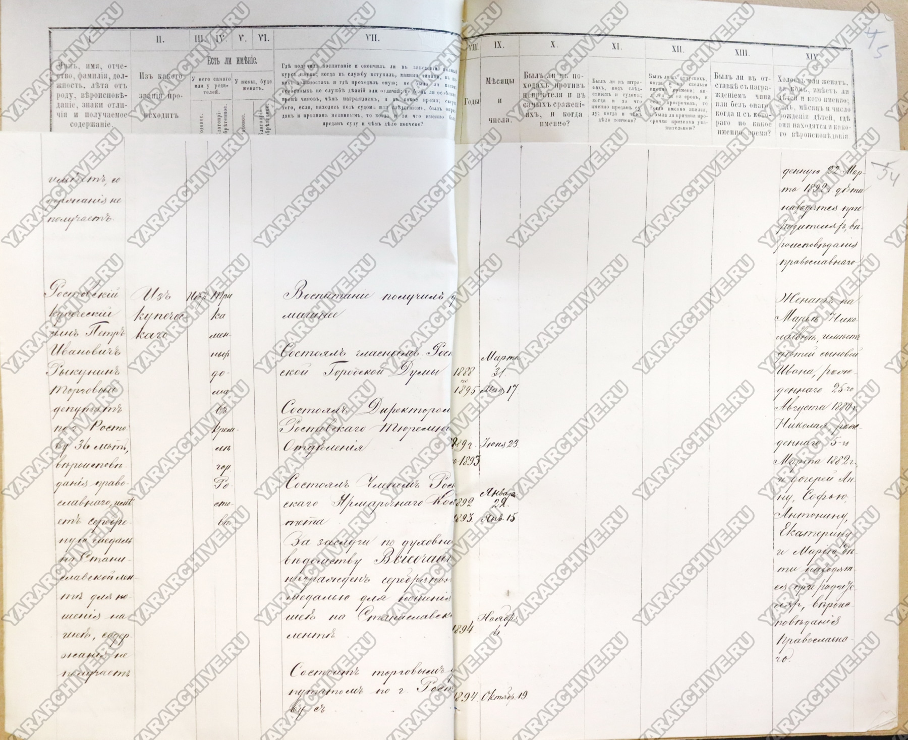 Формулярный список о службе Рыкунина Петра Ивановича за 1901 год