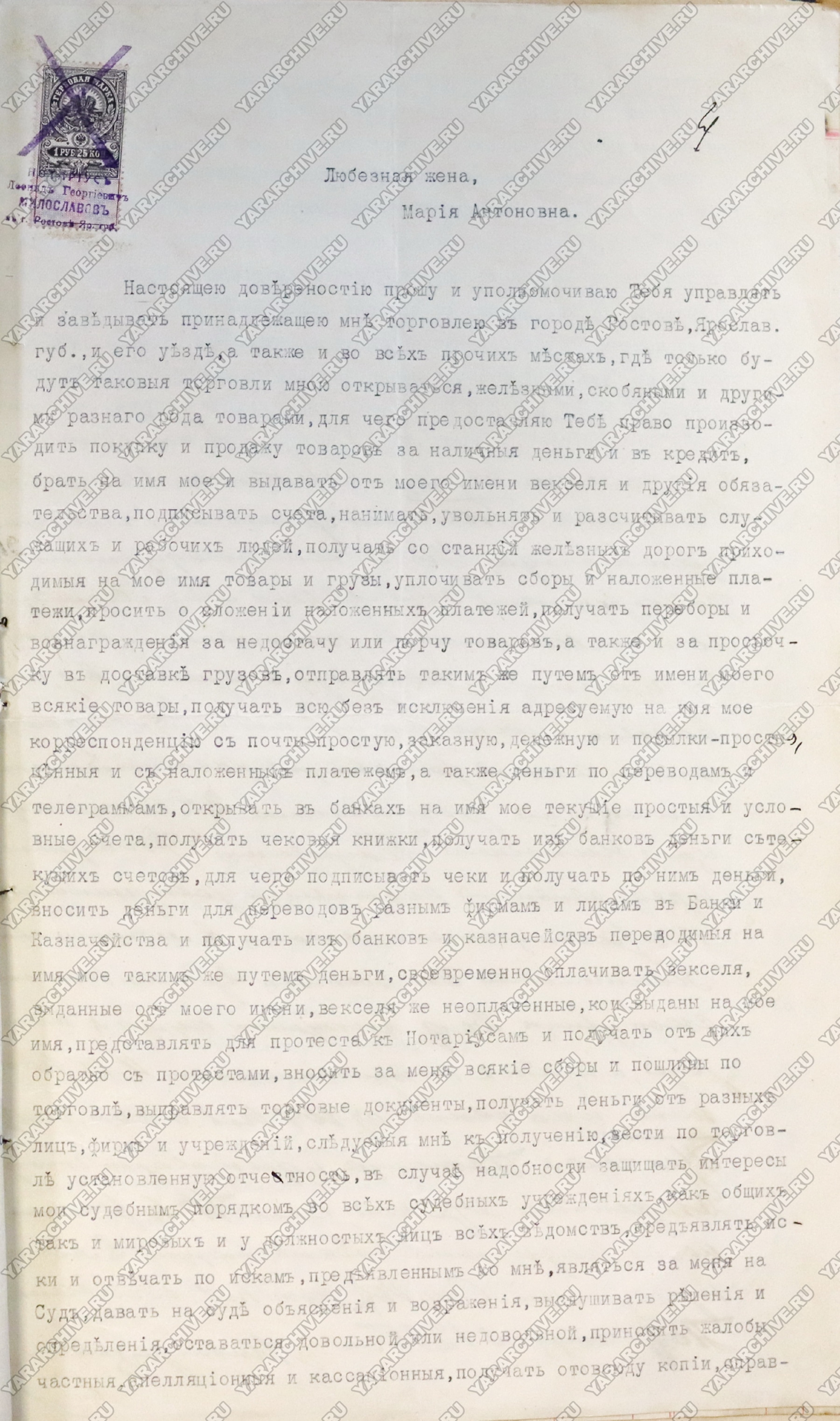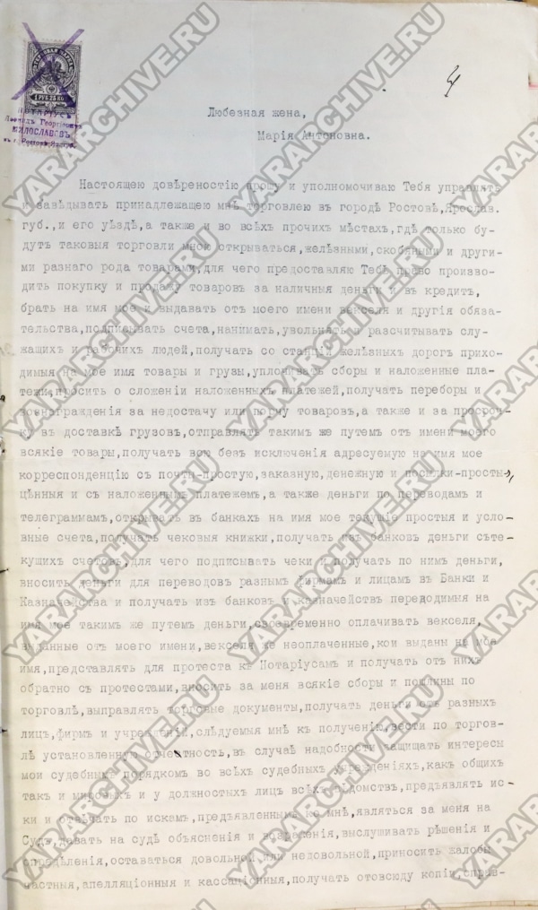 Доверенность Рыкунина Н. П. на имя жены Рыкуниной Марии Антоновны на управление торговлей и представление интересов мужа, 1914 г.19