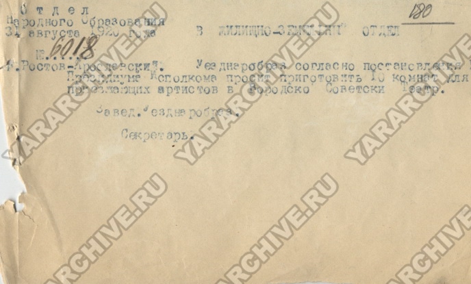 После революции Мария Антоновна, чтобы как-то выжить в текущих условиях, устроилась на работу кассиром в столовую.23 Семья проживала в центре города, в доме № 33 на ул. Подозерка, в уютном и живописном месте — на набережной о. Неро у стен величественного Ростовского кремля.24 В этом доме всегда ютились артисты, что не могло не вызывать восторг у юного Николая.