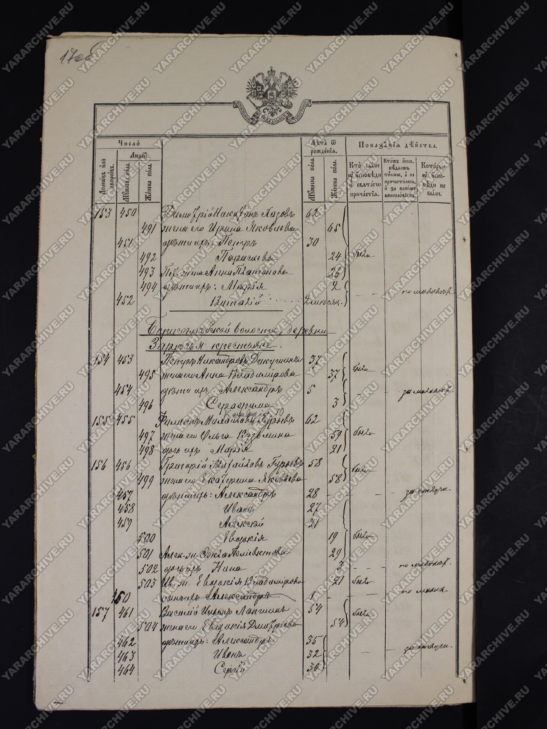 Сведения о проживавшей в деревне Заречье семье крестьян Лапшиных — супругах Александре Васильевиче и Евлампии Филипповне, их детях из исповедной росписи церкви села Ильинского в Белыни Ростовского уезда Ярославской губернии. 1910 г. РсФ ГАЯО. Ф. 372. Оп. 1. Д. 405. Л. 17 об, 18.