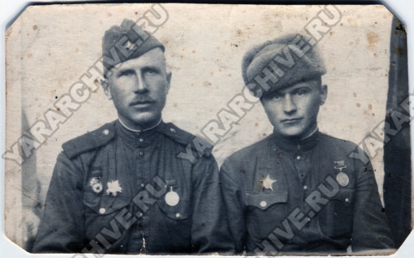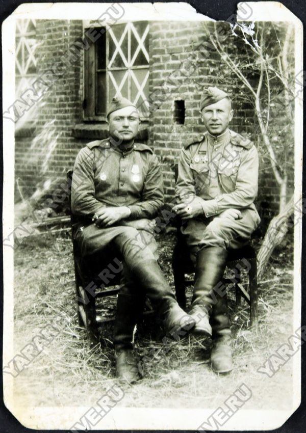 Сослуживцы Н. А. Калинин (слева) и П. Н. Павлов. 15 мая 1944 г. ГКУ ЯО ГАЯО. Ф. Р-849. Оп. 1. Д. 129. Л. 1.