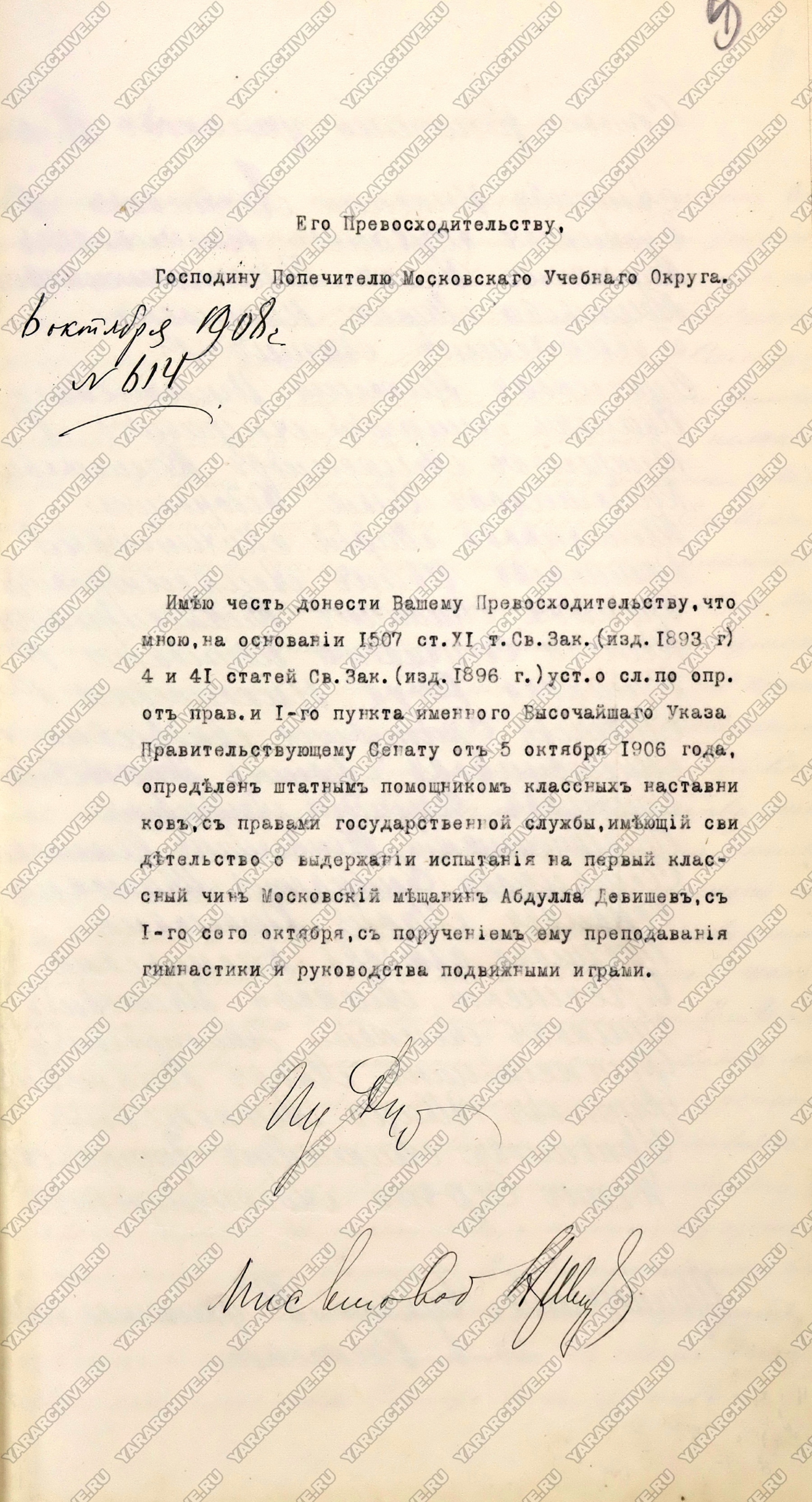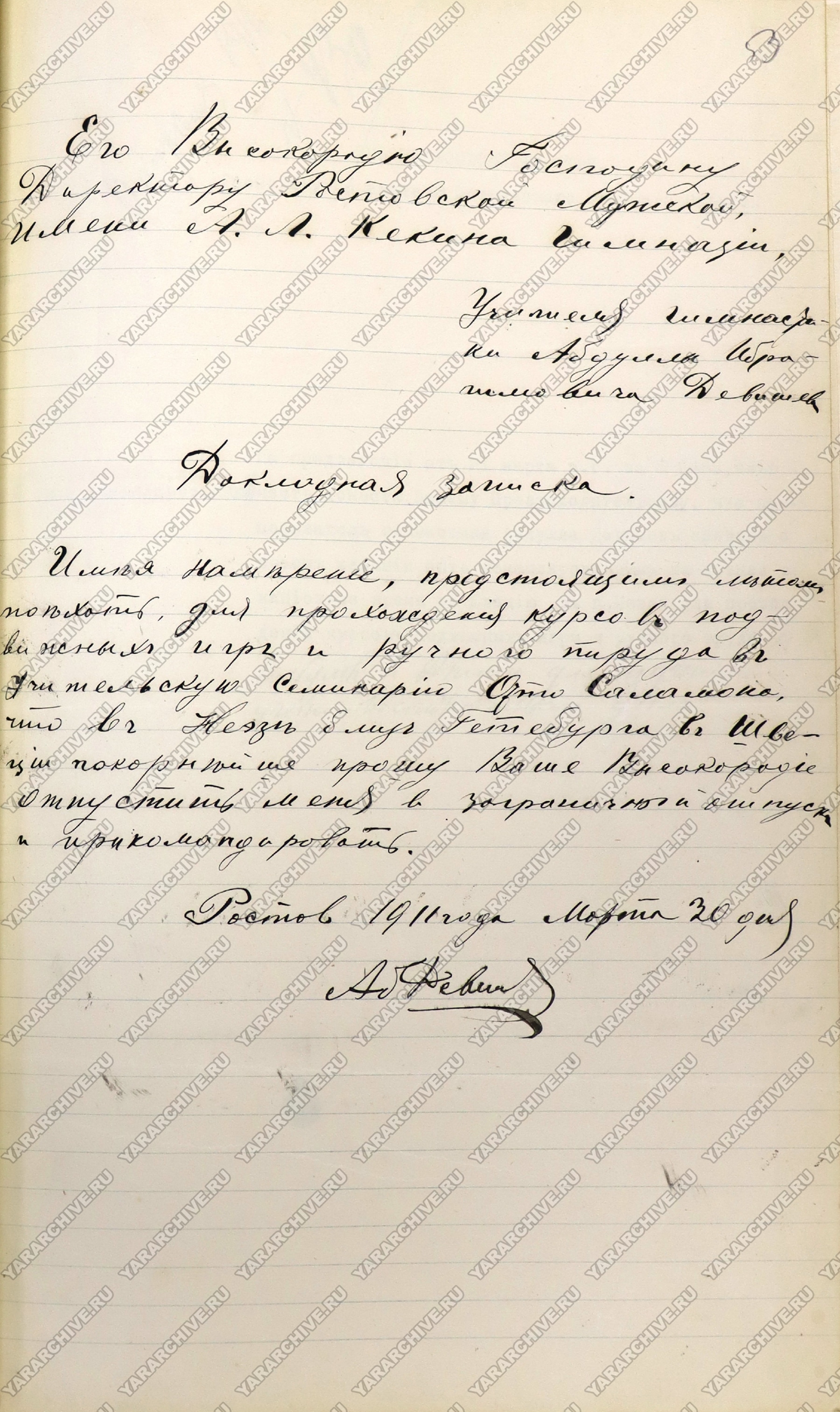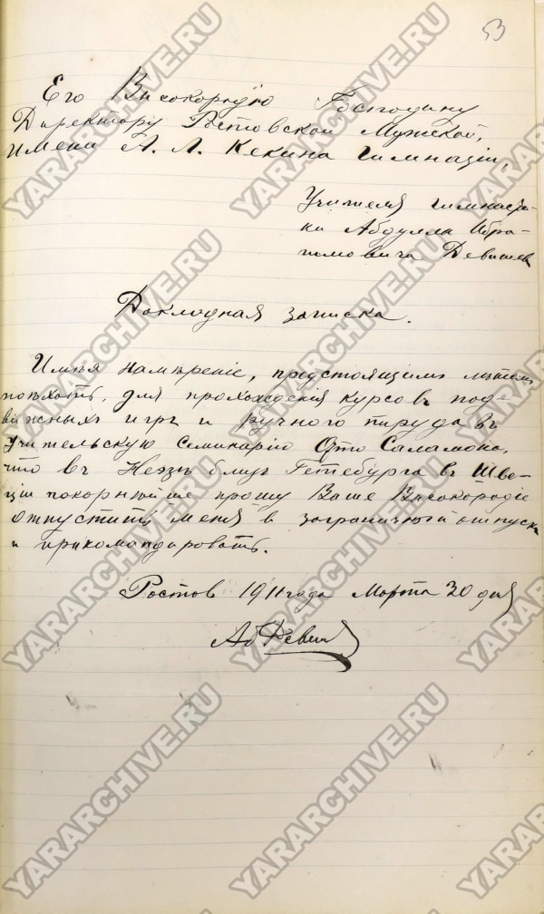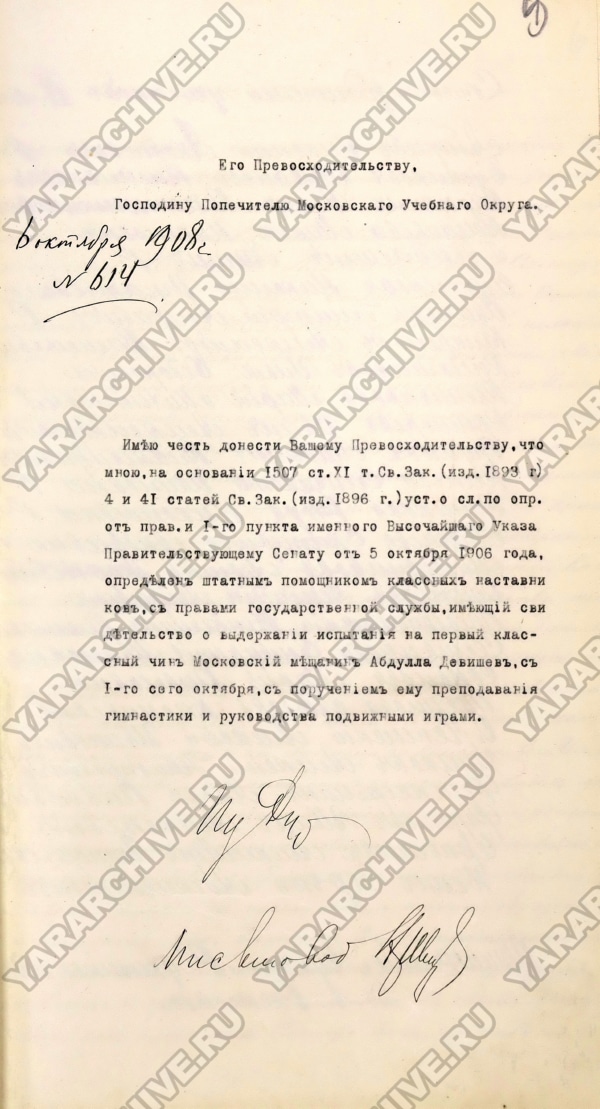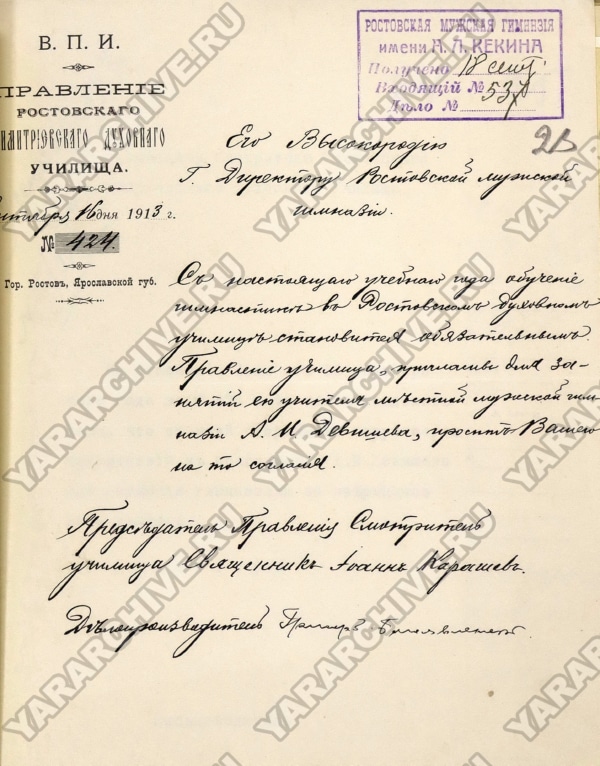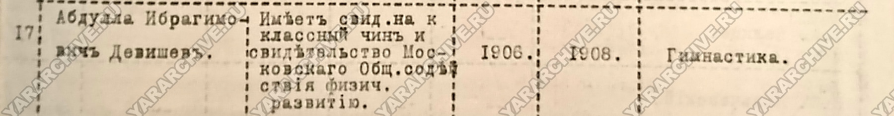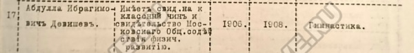 С 1913 учебного года обучение гимнастике становится обязательным и в Ростовском духовном училище. Для проведения уроков правление училища приняло решение пригласить учителя Абдуллу Ибрагимовича Девишева.33