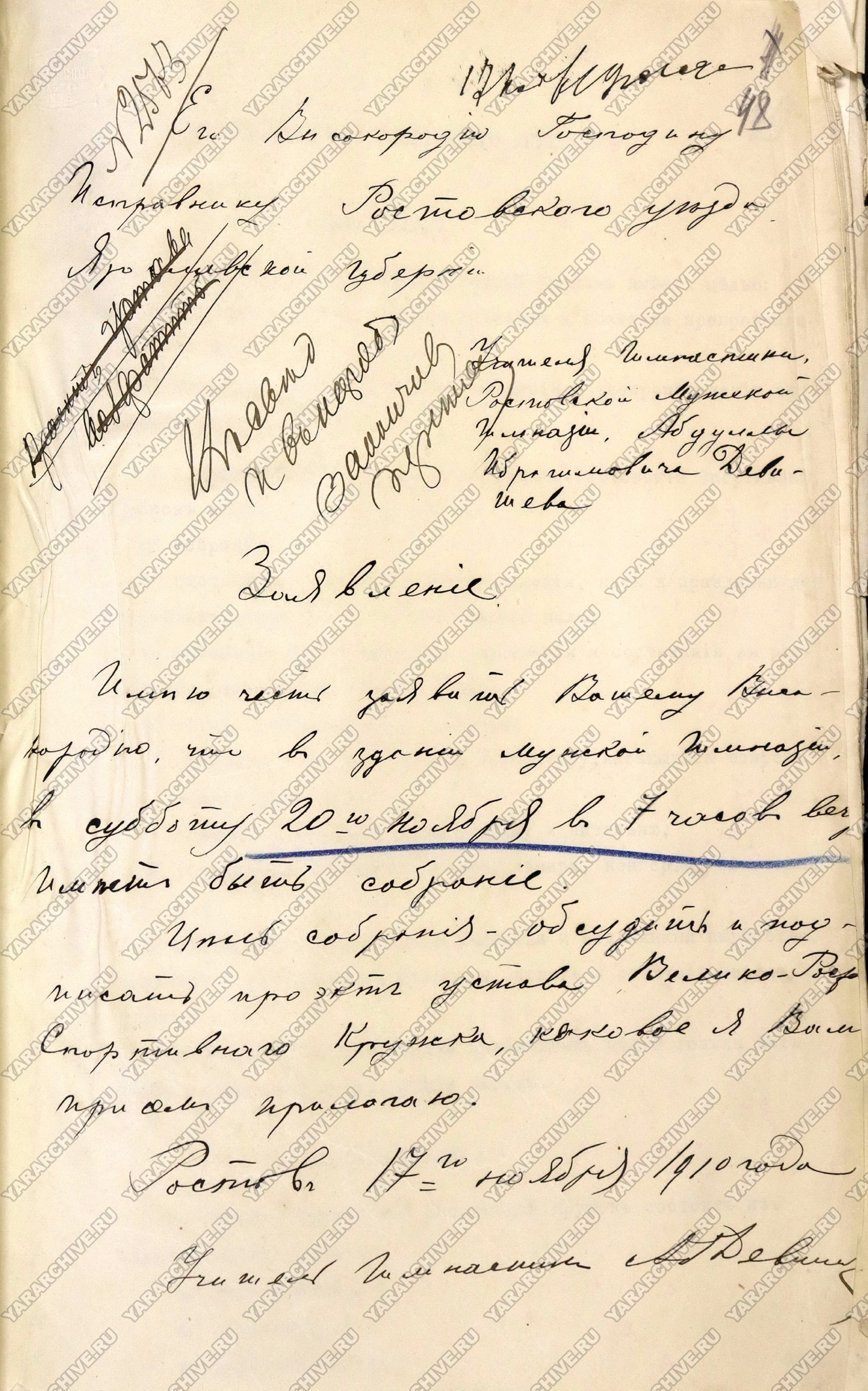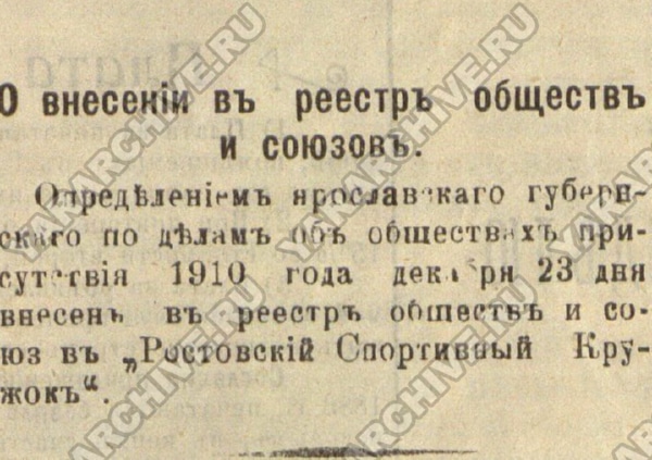 В Ростове к этому времени тоже было организовано свое спортивное общество — Велико-Ростовский Спортивный Кружок. 20 ноября 1910 г. в здании Ростовской мужской гимназии имени А. Л. Кекина состоялось собрание по вопросу рассмотрения Устава кружка.39