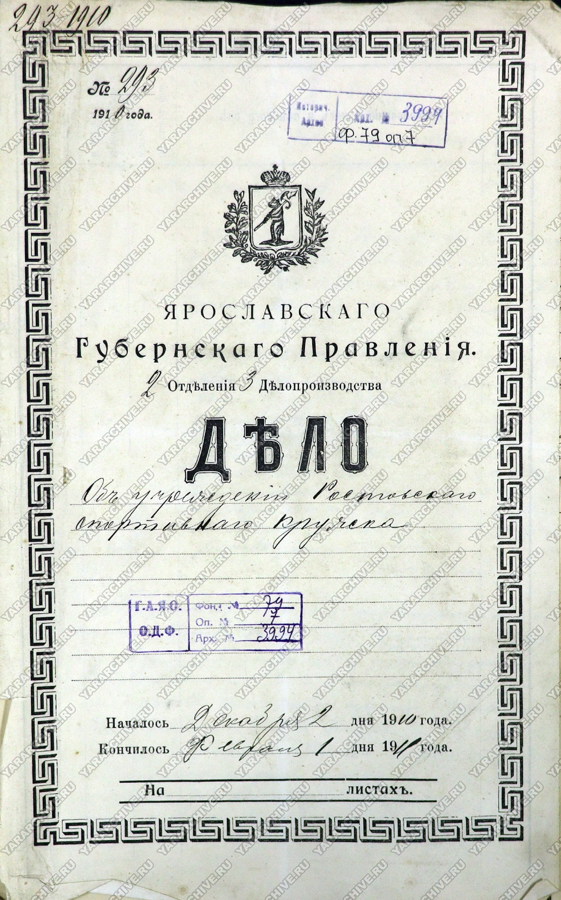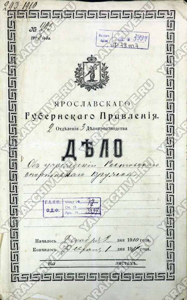 23 декабря 1910 г. на основании 23 статьи Закона 04 марта 1906 г. об обществах и союзах Устав кружка был утвержден Ярославским губернским по делам об обществах присутствием и внесен в специальный «реестр об обществах и союзах», о чем были сделаны соответствующие публикации в «Сенатских объявлениях» и «Ярославских губернских ведомостях».41