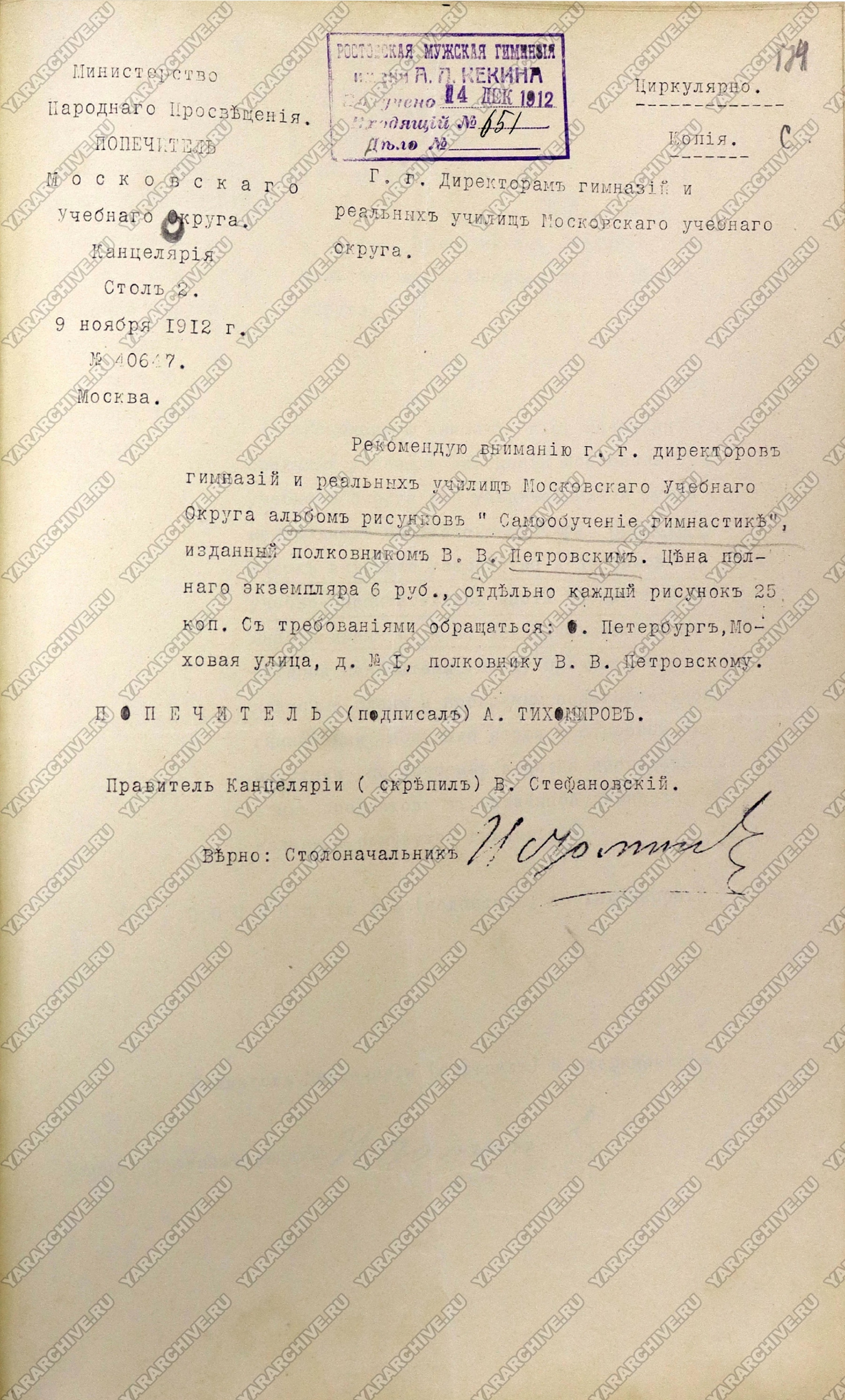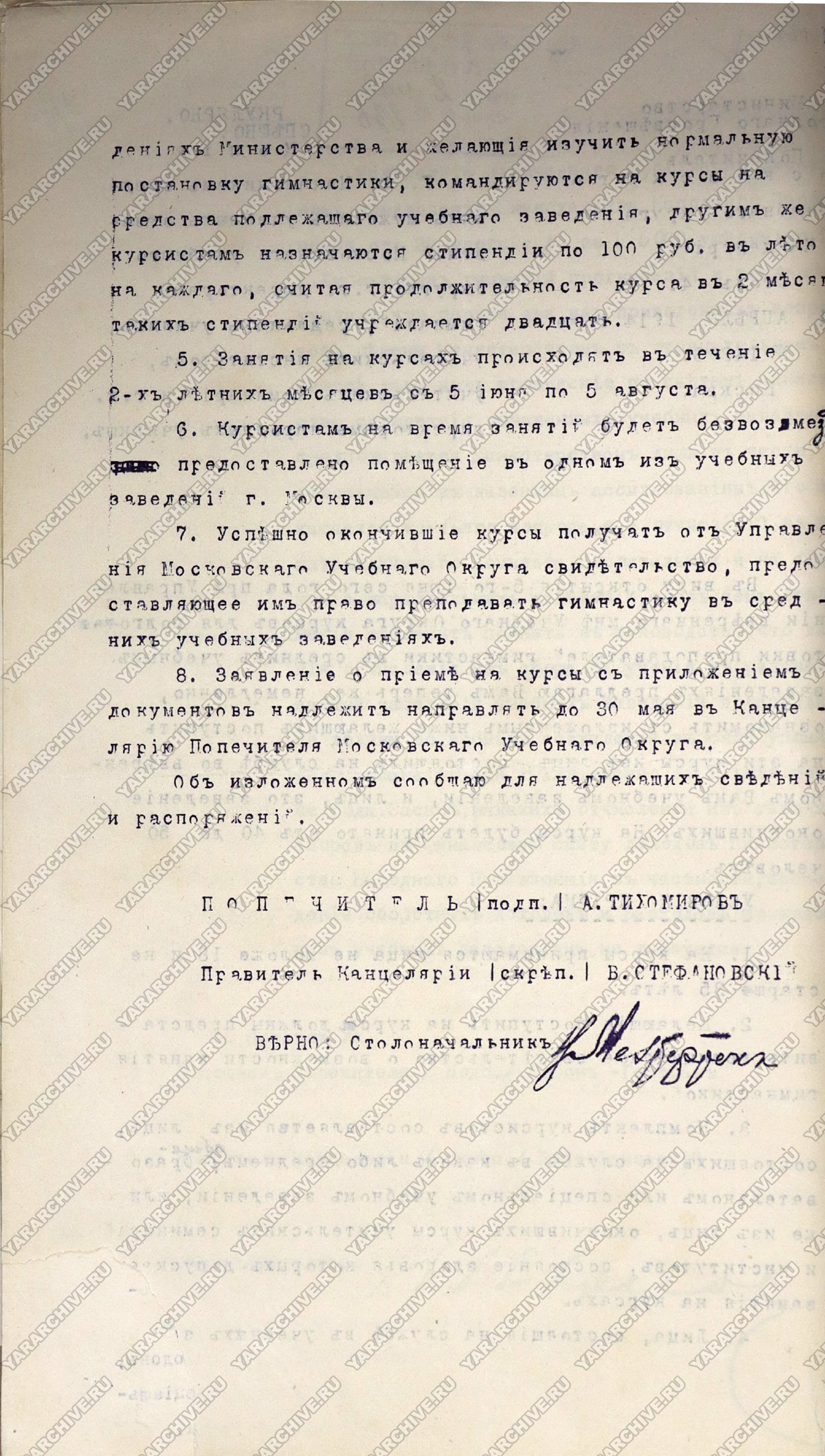 03 марта 1908 г. Министерство народного просвещения затребовало сведения об обучении детей в начальных училищах «строю и гимнастике». Выяснилось, что «наблюдается значительный упадок физического развития молодых поколений». Министерством было признано, что физическое здоровье и развитие детей заслуживают таких же забот, как и развитие умственное и нравственное, а преподавание строя и гимнастики — «мерою в высшей степени полезною и желательною в целях поднятия и улучшения физического развития народа». Кроме того, отмечалось, что в начальных училищах Донской области уже начали проводить подобные занятия и «благодаря им, учащимся сообщаются бодрое и жизнерадостное настроение, выправка, молодцеватость и пр. ...».7