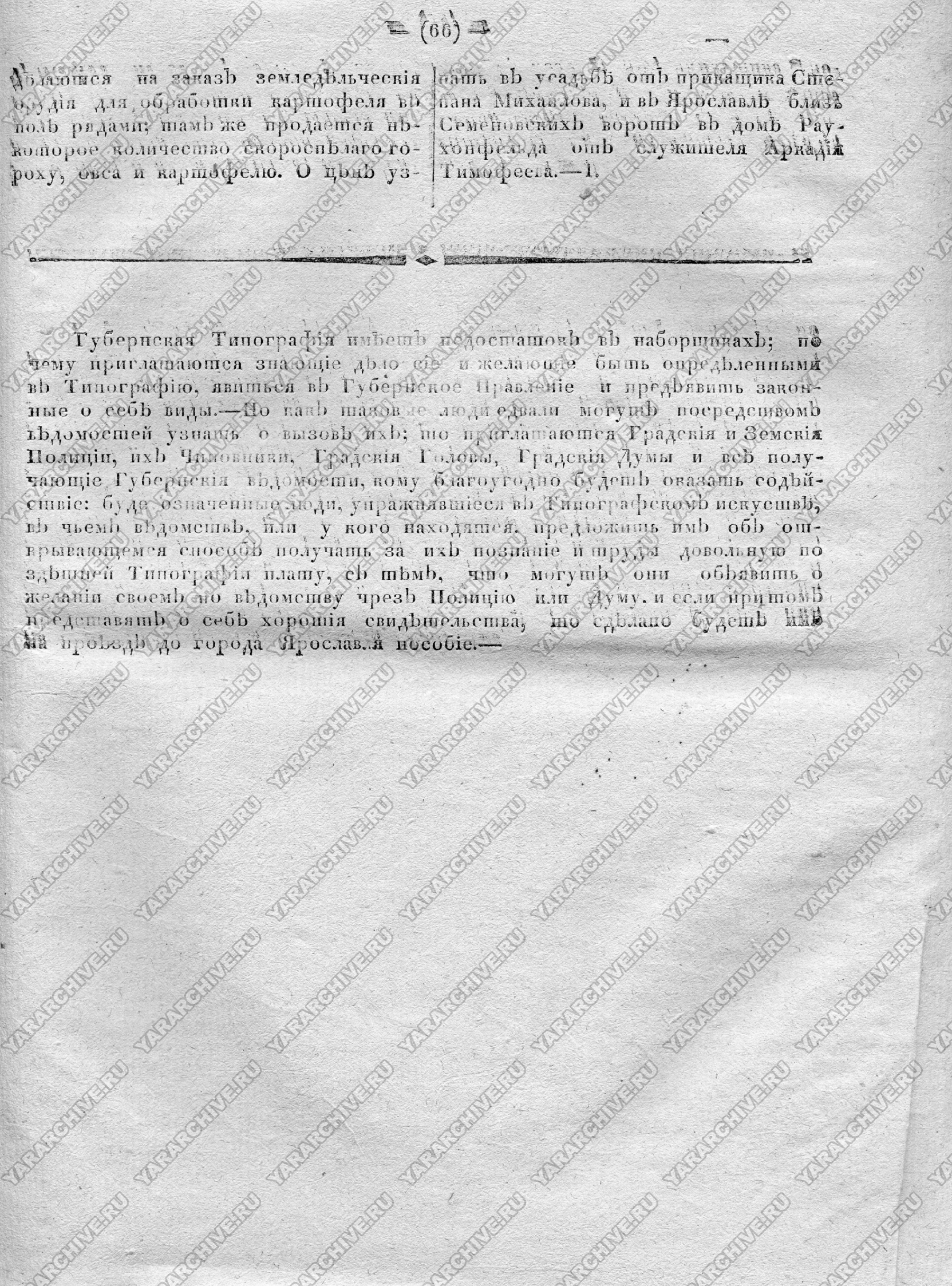 22 февраля 1832 г. датировано распоряжение управляющего редакцией советника редактору «Ярославских губернских ведомостей» коллежскому регистратору Рукину, в котором отмечалось:
