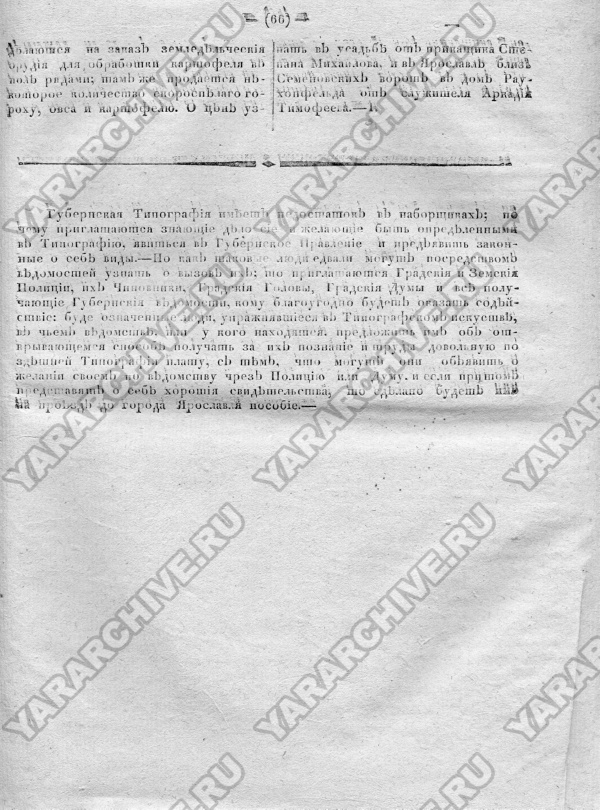 Объявление о вакансиях типографских наборщиков, опубликованное в № 3 газеты «Ярославские губернские ведомости» от 20 марта 1831 г.