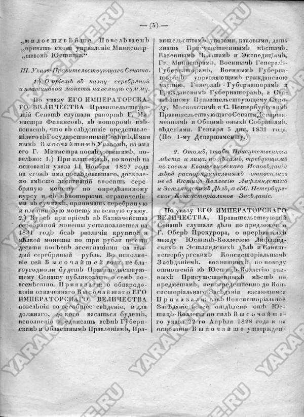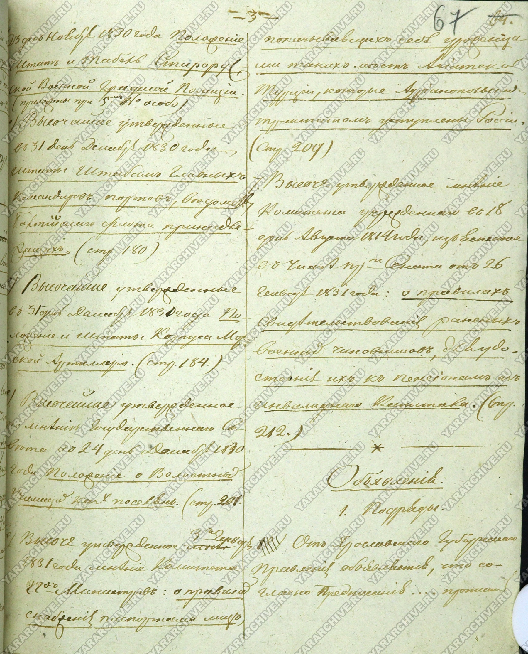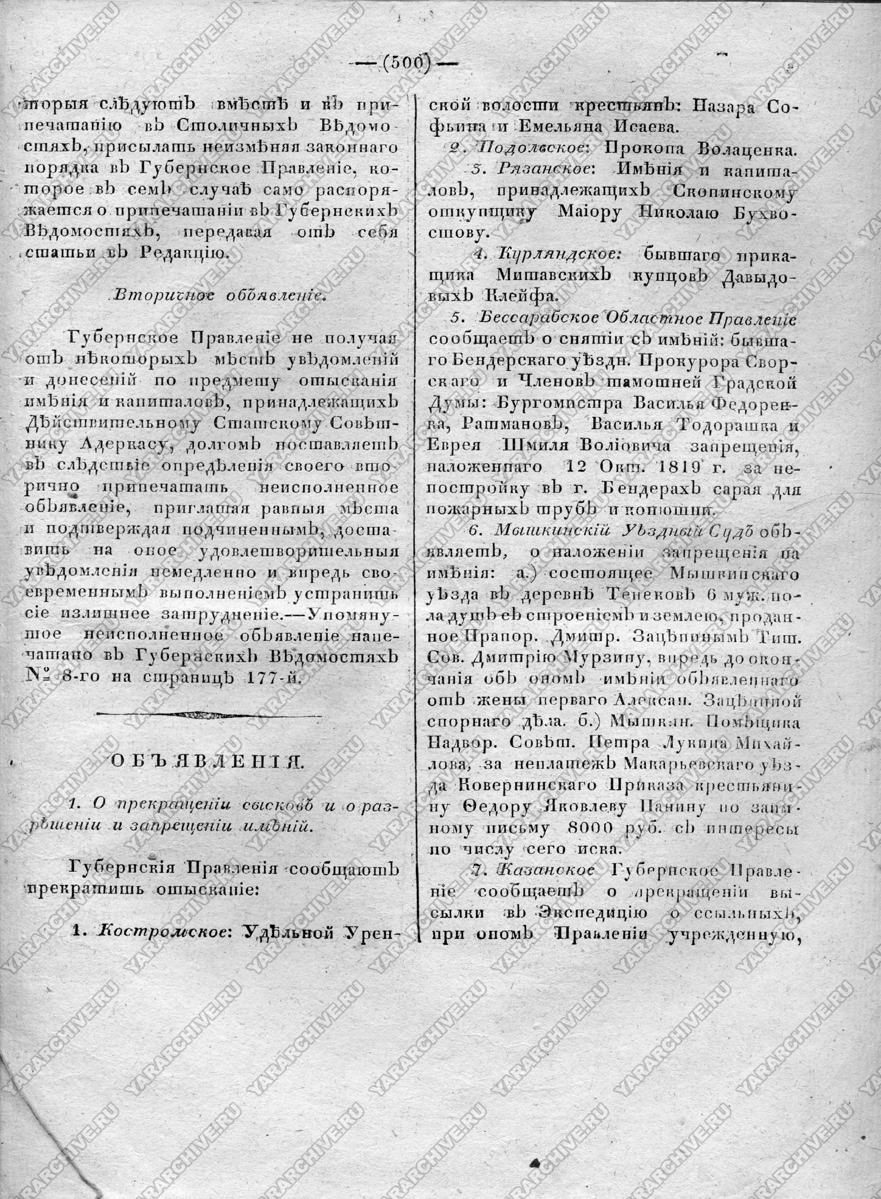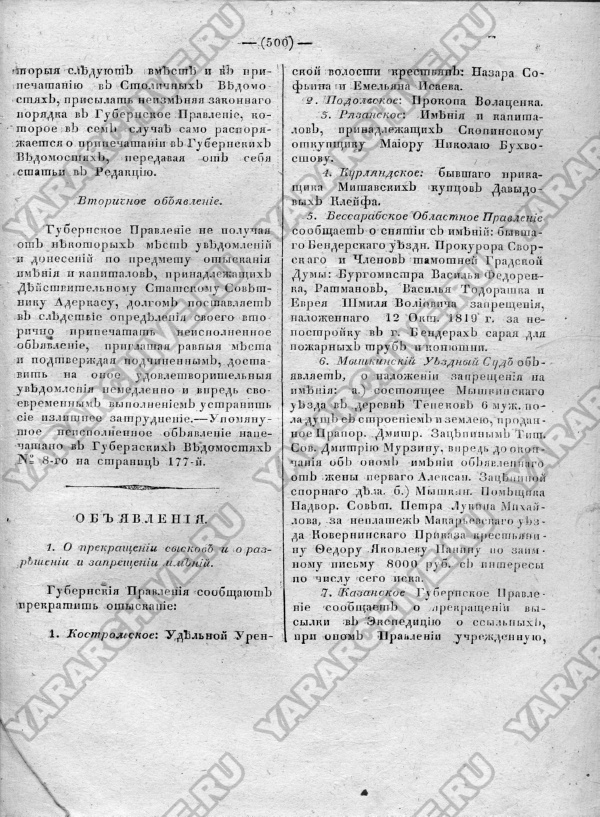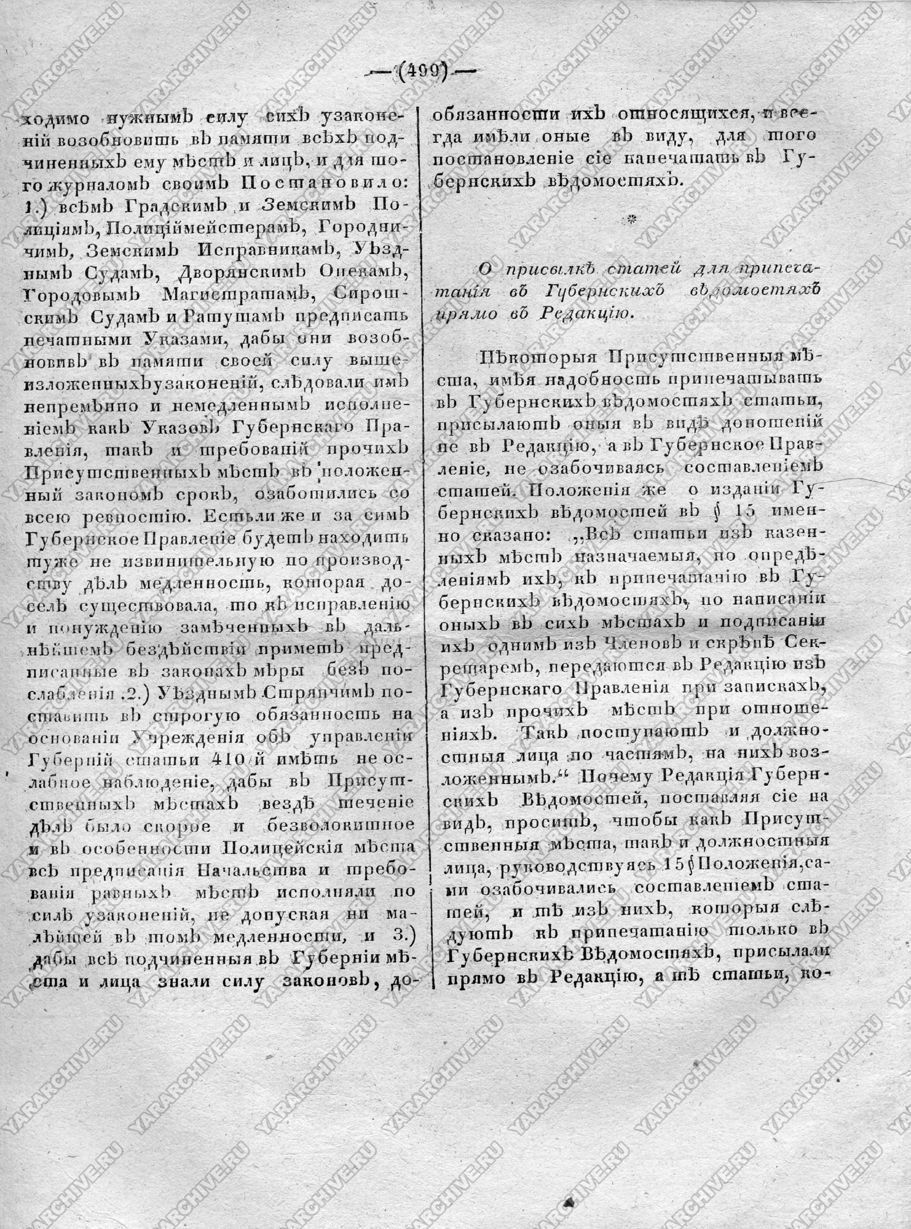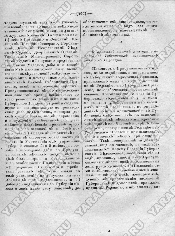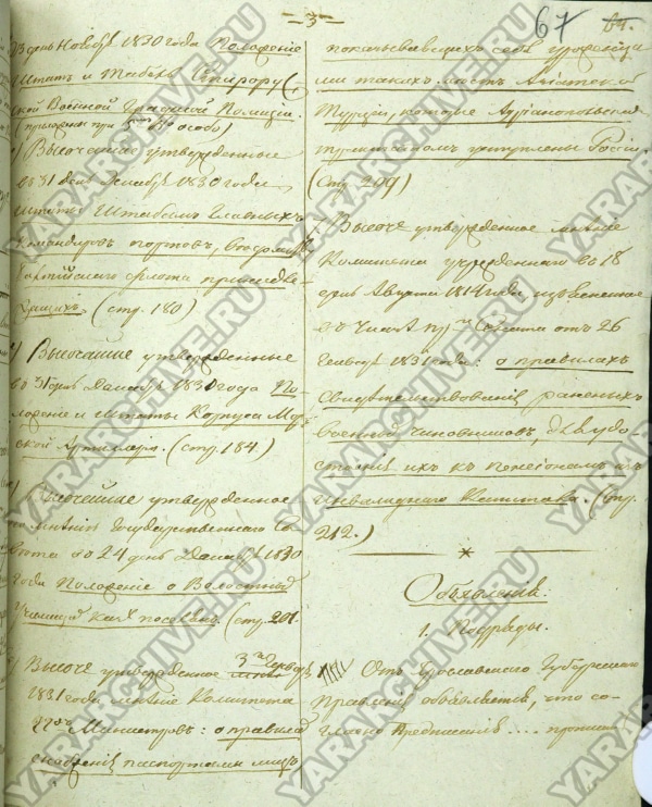 Объявление о требованиях к публикации статей из Присутственных мест, помещенное в № 19 газеты «Ярославские губернские ведомости» от 10 июля 1831 г.
