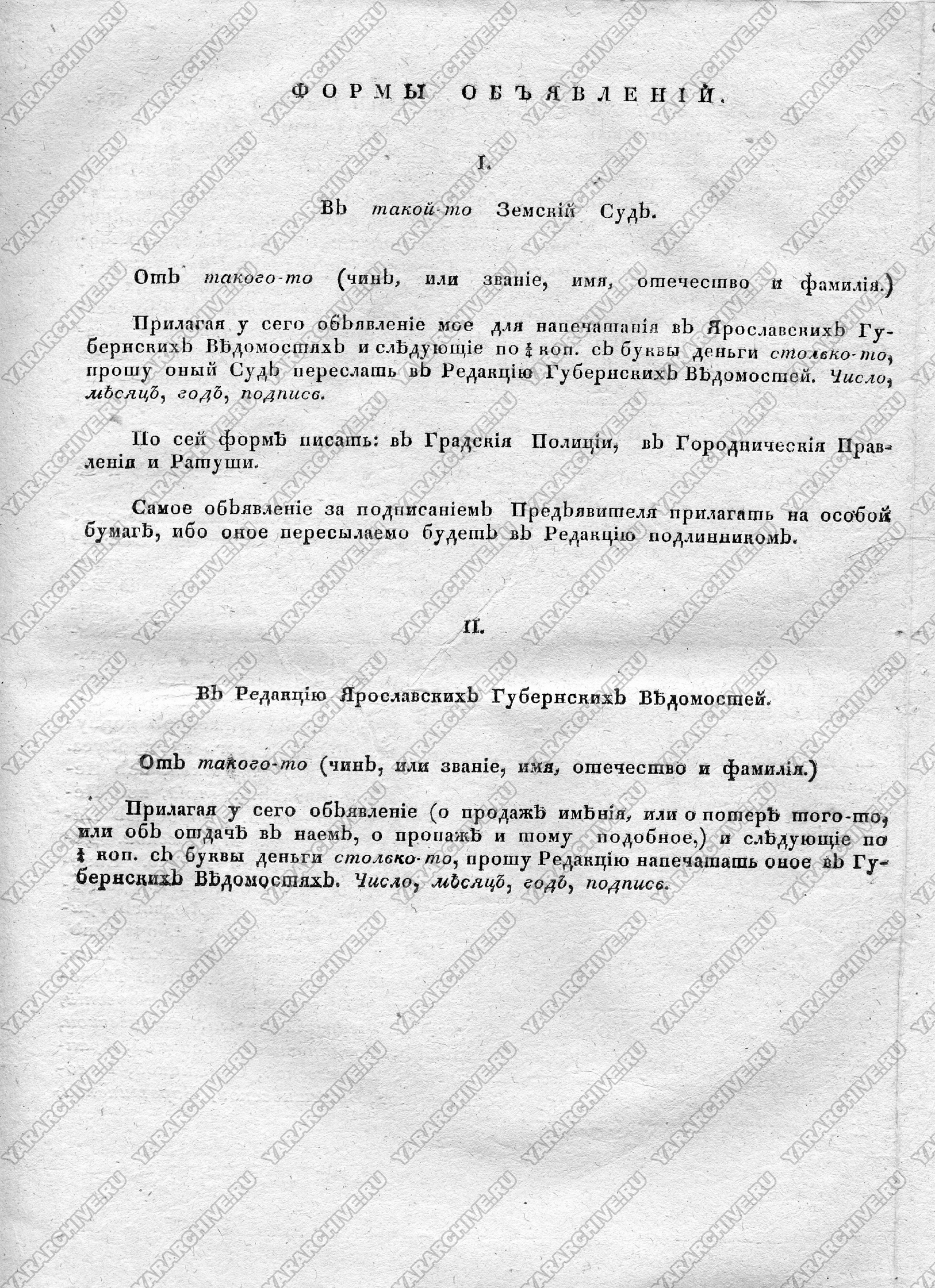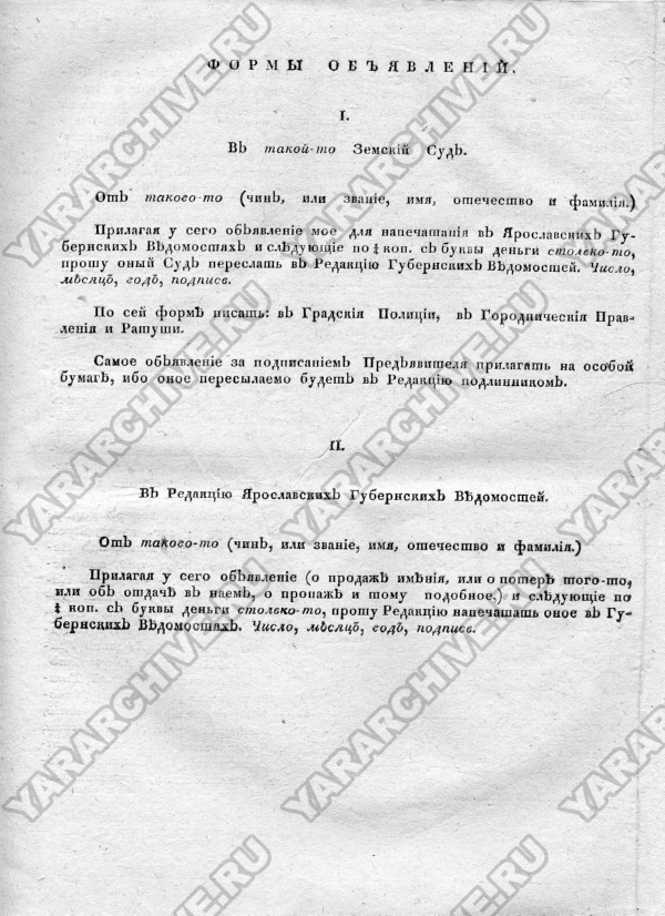 Форма объявления от частного лица, напечатанного в № 25 газеты «Ярославские губернские ведомости» от 21 августа 1831 г.