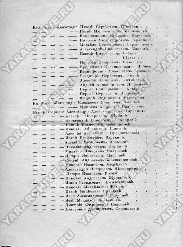 В «Формулярных списках служащих губернского правления» за 1836 г. 31 значится коллежский секретарь Семен Алексеевич Новиков, помощник экзекутора и казначея. Чиновник происходил из воспитанников Дома призрения ближнего, начал службу в 1816 г. копиистом в Ярославской городской полиции, где к 1823 г. стал коллежским регистратором. Затем С. А. Новиков некоторое время состоял письмоводителем в Пошехонском городническом правлении; в 1830 г. перевелся в штат губернского правления на должность экзекутора, а с 5 января 1831 г. — смотрителя типографии. За свои труды был Всемилостивейше пожалован в ноябре 1831 г. денежной наградой в сумме 5000 рублей. В 1831 г. Семен Алексеевич стал коллежским секретарем, в 1834 г. — смотрителем казенных зданий губернских присутственных мест, в 1835 г. — помощником экзекутора и казначея 32 .