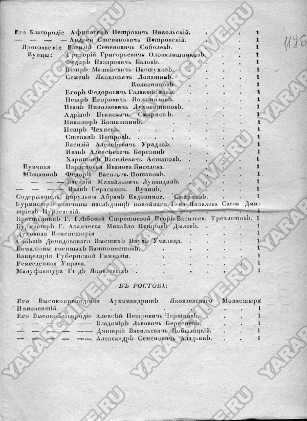 В журнале Ярославского губернского правления от 5 февраля 1831 г. отмечалось: