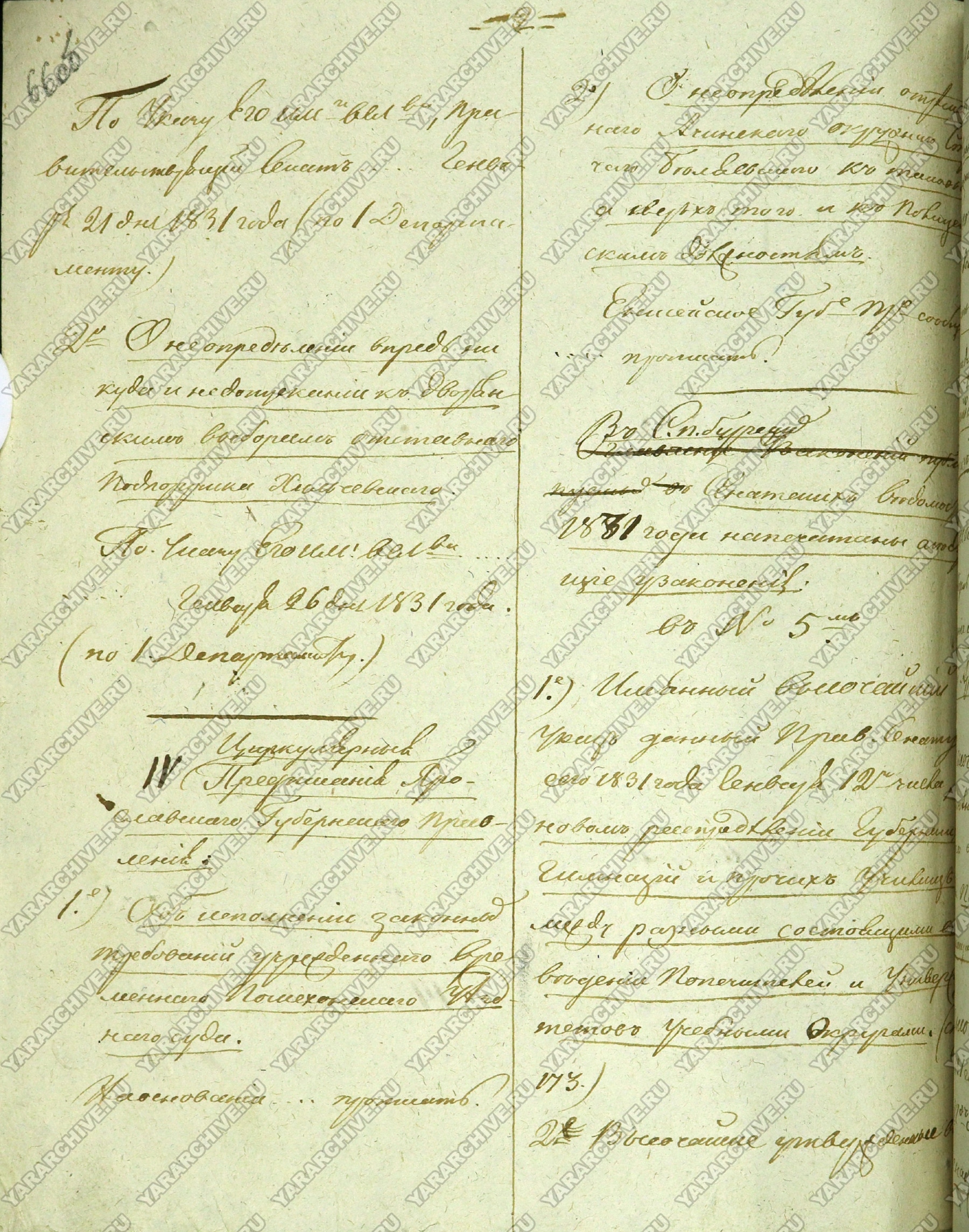 «Слушали: представление Советника сего Правления управляющего Редакциею „Губернских ведомостей“ за № 127-м, коим изъяснив: журналом сего правления предназначено: издание „Губернских ведомостей“ начать с 1 будущего марта по Высочайше утвержденному в 27 день октября минувшего 1830 года Положению...» 13