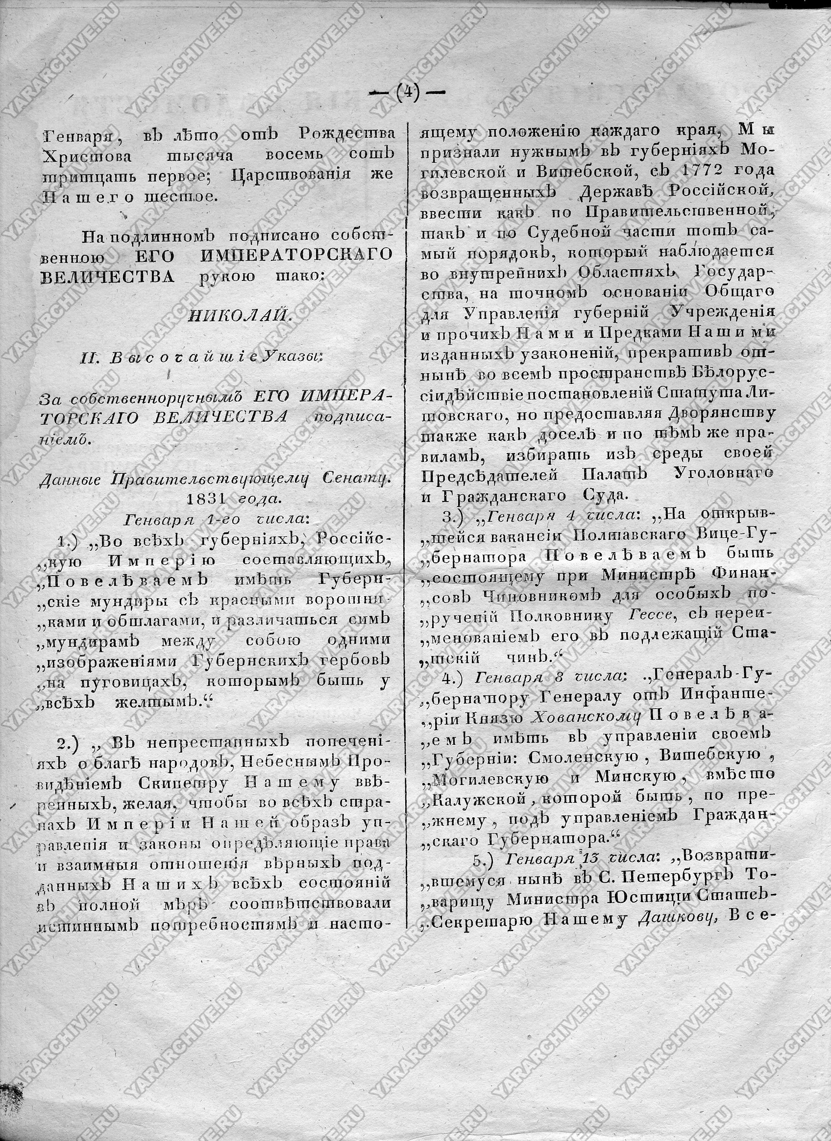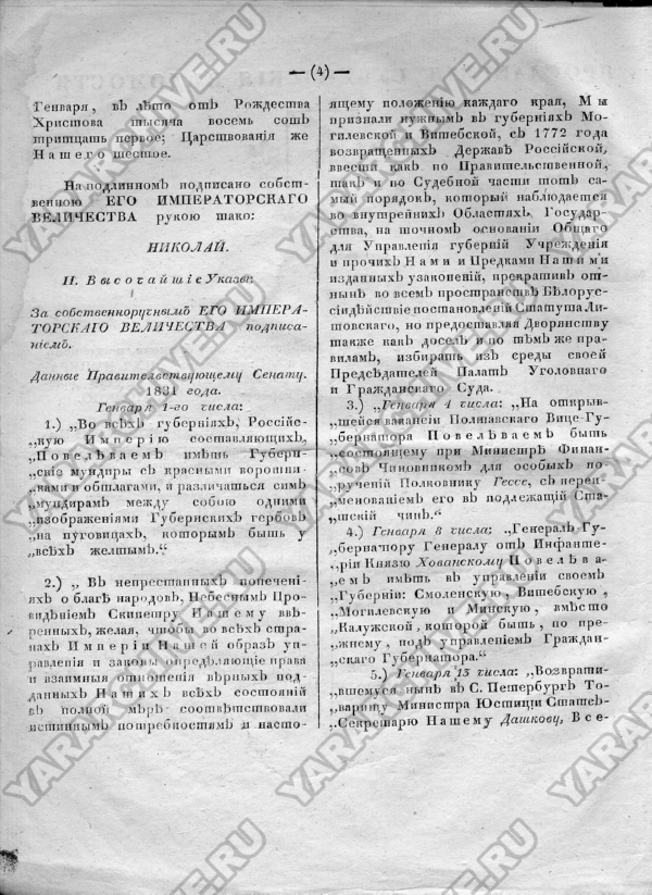 Первый номер газеты «Ярославские губернские ведомости». 6 марта 1831 г. Фрагмент.