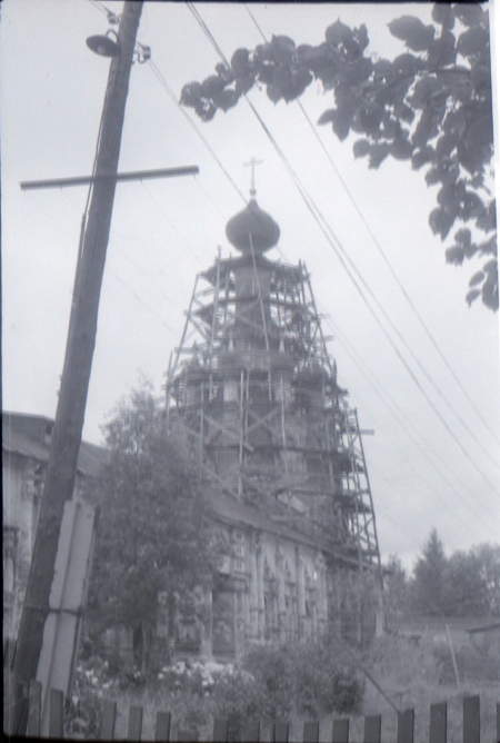 2.Самая церковь раскрыта, и внутри оказался полный разгром: плиты разворочены; иконостас обломан и его части растащены; иконы валяются на полу, занесены снегом и растаскиваются населением.