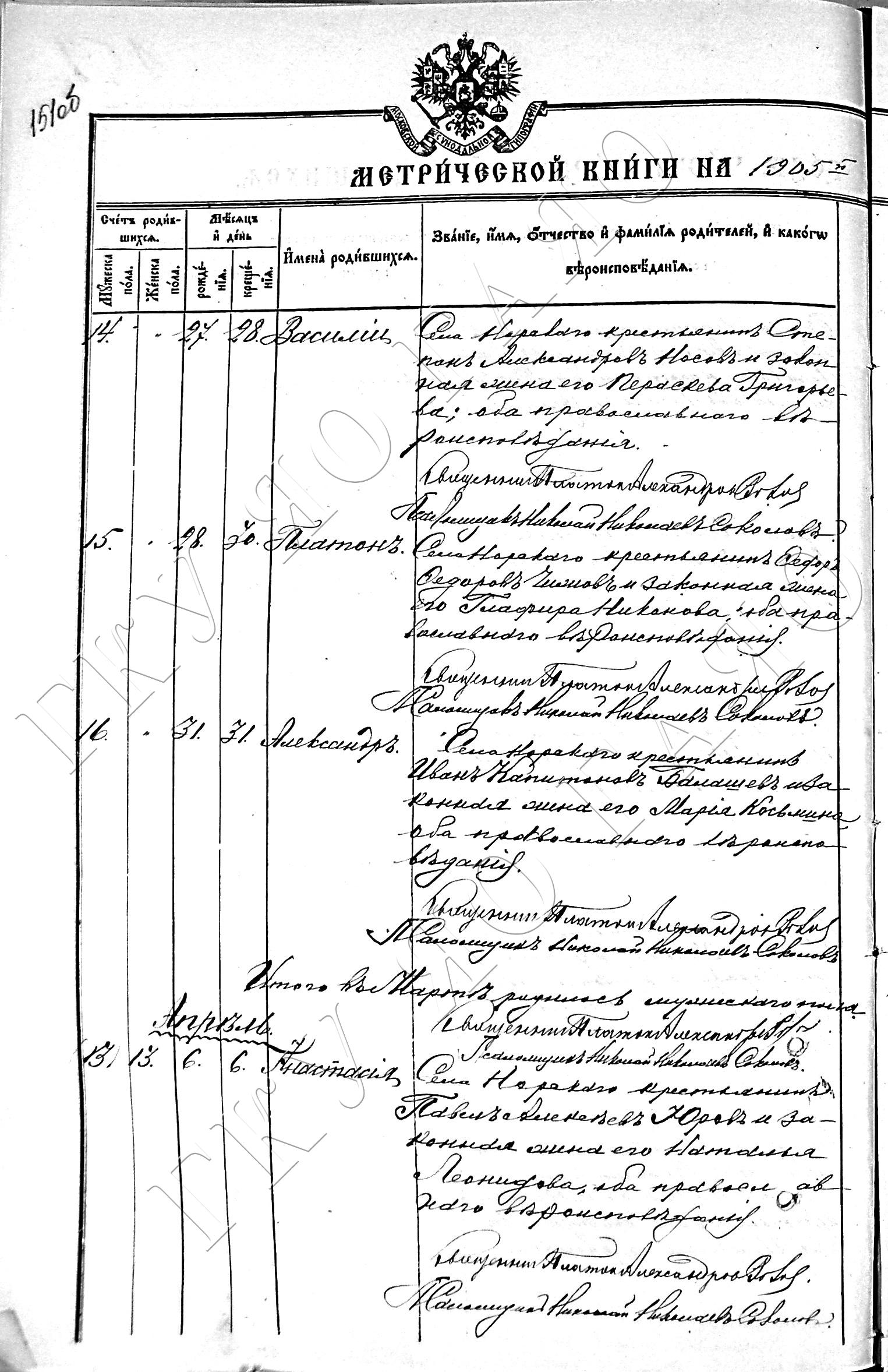 14 апреля (по старому стилю 31 марта) 1905 г. в семье крестьян села Норского Ярославского уезда Ярославской губернии Ивана Капитоновича и Марии Кузьминичны Балашовых родился сын. 1 В тот же день родители понесли новорожденного крестить в свою приходскую Михаилоархангельскую церковь. При крещении нарекли мальчика Александром, что в переводе с древне — греческого языка означает «Защитник людей". 2