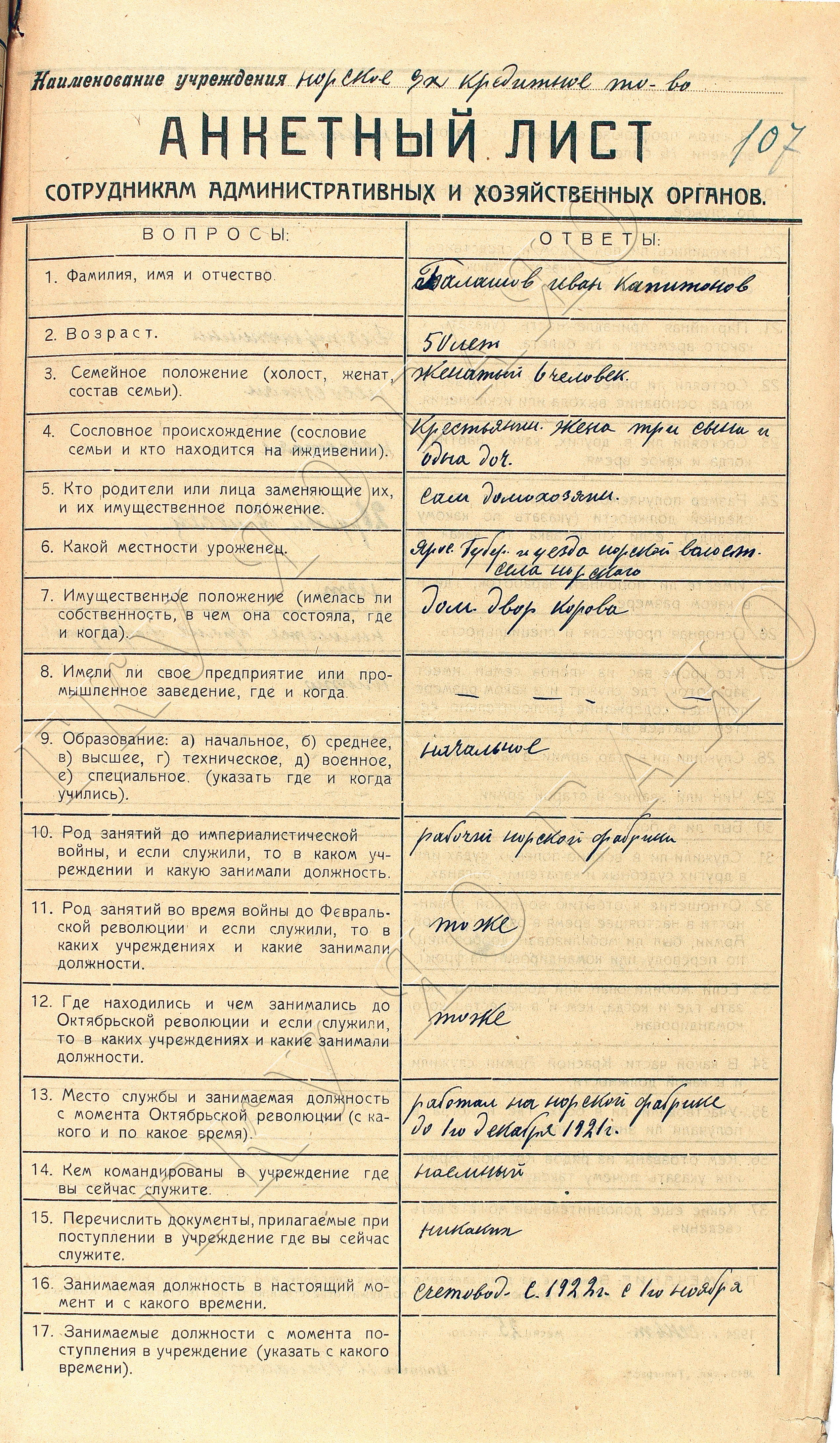 Анкета И. К. Балашова. 25.09.1924 г. Ф.Р-180. Оп.2. Д.17 л.107.