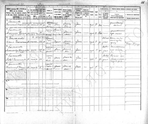 Переписной лист Первой Всеобщей переписи населения Российской империи 1897 г. по селу Норскому на семью Балашовых. Ф.642. Оп.3. Д.1379.