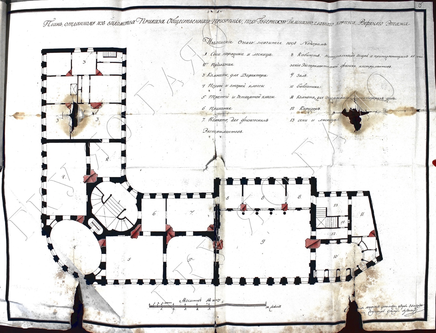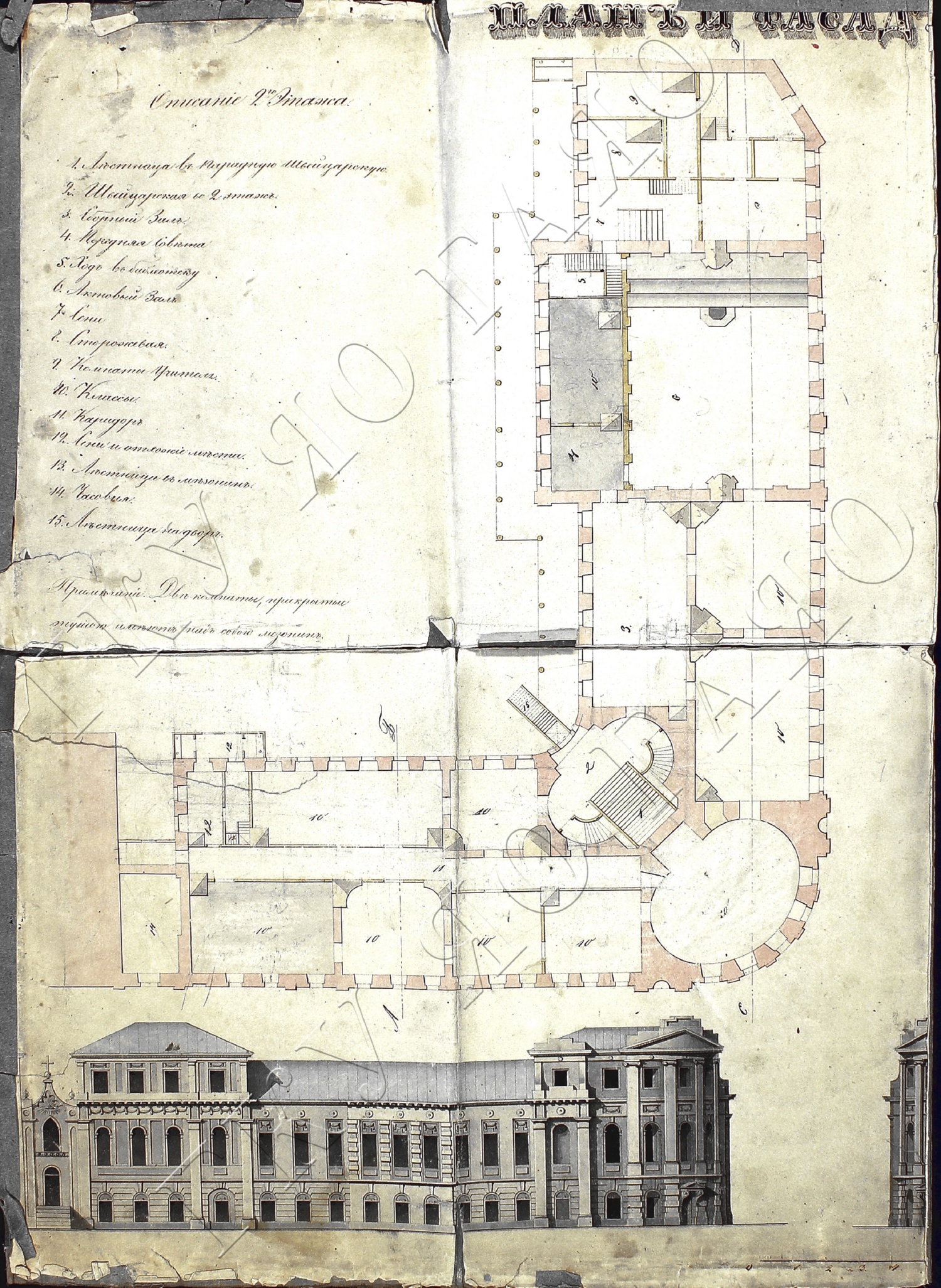 Пометы: По сей описи здал дом г[осподи]ну директору училищ колегскому ассесору Никифору Федоровичу Покровскому. Полковник и ковалер Владимир Филатьев; По сему описанию дом принял от подрядчика, полковника и кавалера. Директор Покровский.